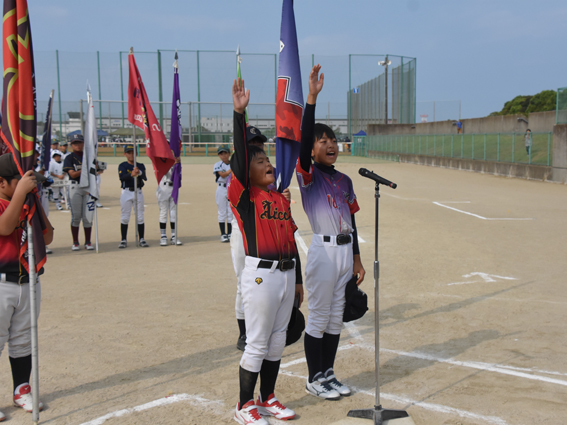 | 開会式 2024年8月25日(日曜日) 雁の巣レクリエーションセンター / ソフトボール場専用球場 ![]() 選手宣誓 愛好クラブ キャプテン 遠藤虎太郎 千早西クラブ キャプテン 小川大輝 |