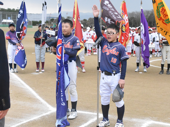 | 開会式 2024年3月3日(日曜日) 雁の巣レクリエーションセンター / ソフトボール場Aグラウンド ![]() 選手宣誓:那珂イーグルス キャプテン 東原新明 くん |