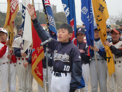 | 選手宣誓 : 鶴田少年ソフトクラブ 角町 凌 主将 |