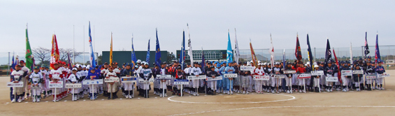 開会式 平成29年3月5日(日曜日) 雁の巣レクリエーションセンター / ソフトボール専用球場 選手宣誓 八田リトルペガサス 主将:田中那和くん |